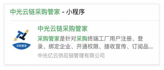 ① 打開(kāi)微信,搜索 【 中光云鏈采購(gòu)管家 】,打開(kāi)小程序